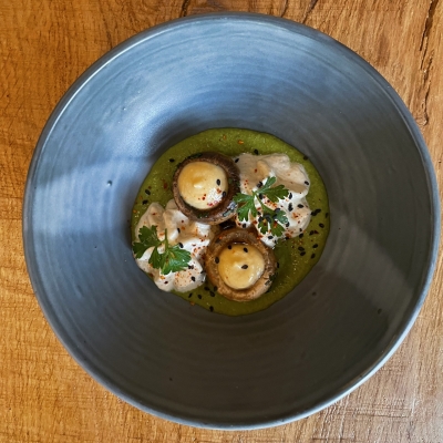 Suivant l'inspiration de Damien le cuisinier, le menu change tous les jours, selon la saison et nos producteurs locaux.